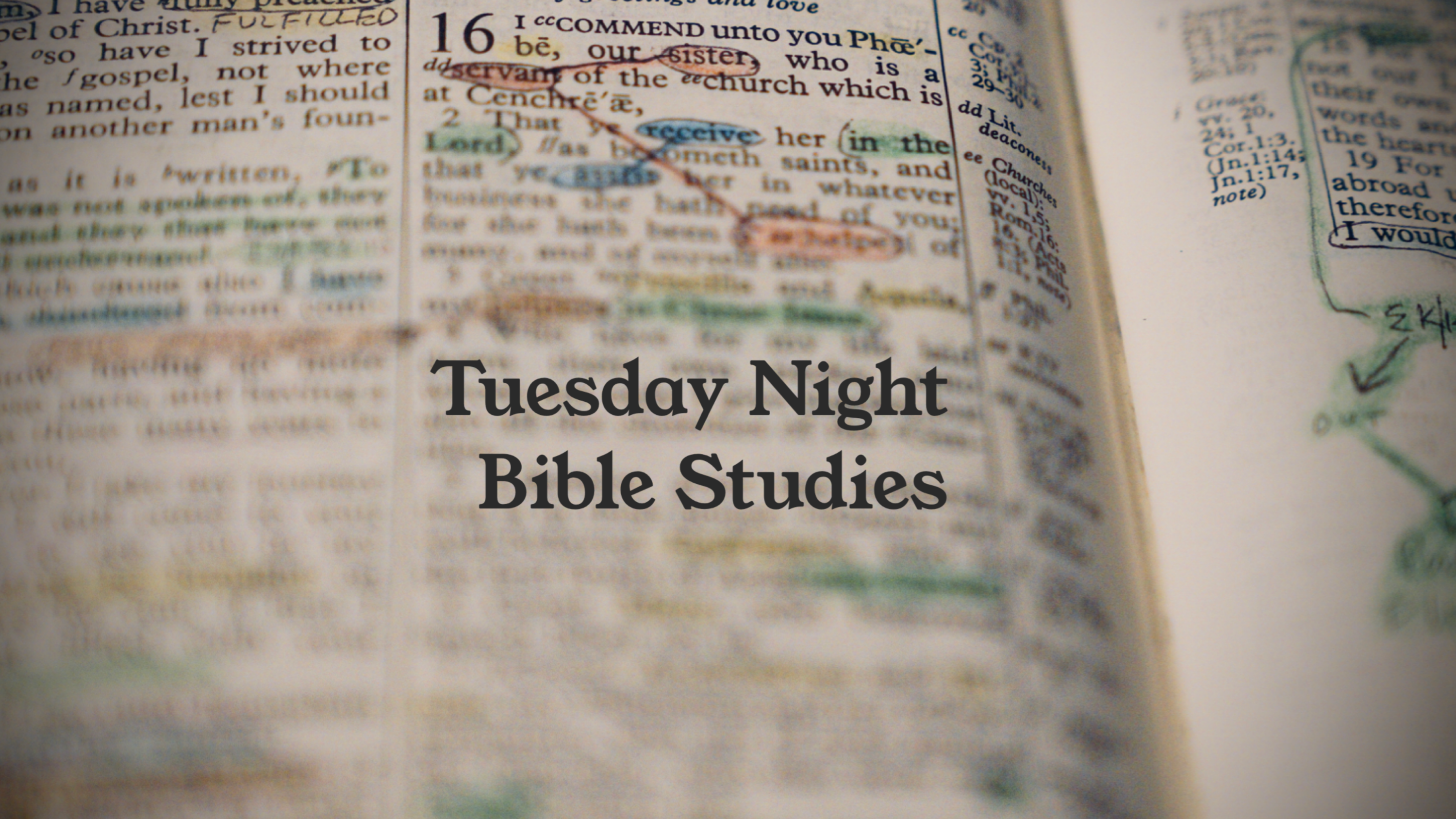 Tuesdays, 6:30-8pm (on campus, in the sanctuary)